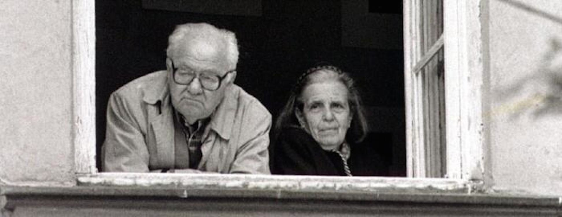 gustaw e lidia affacciata ad una finestra di casa rosa